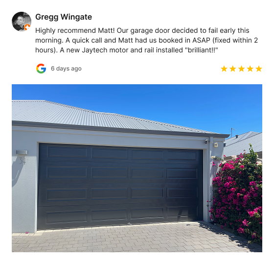 Same-day garage door motor repairs, replacements, and installations across Mandurah, Rockingham, and surrounding suburbs. Fully stocked vans. Real local technicians. 99% of jobs fixed on the spot.